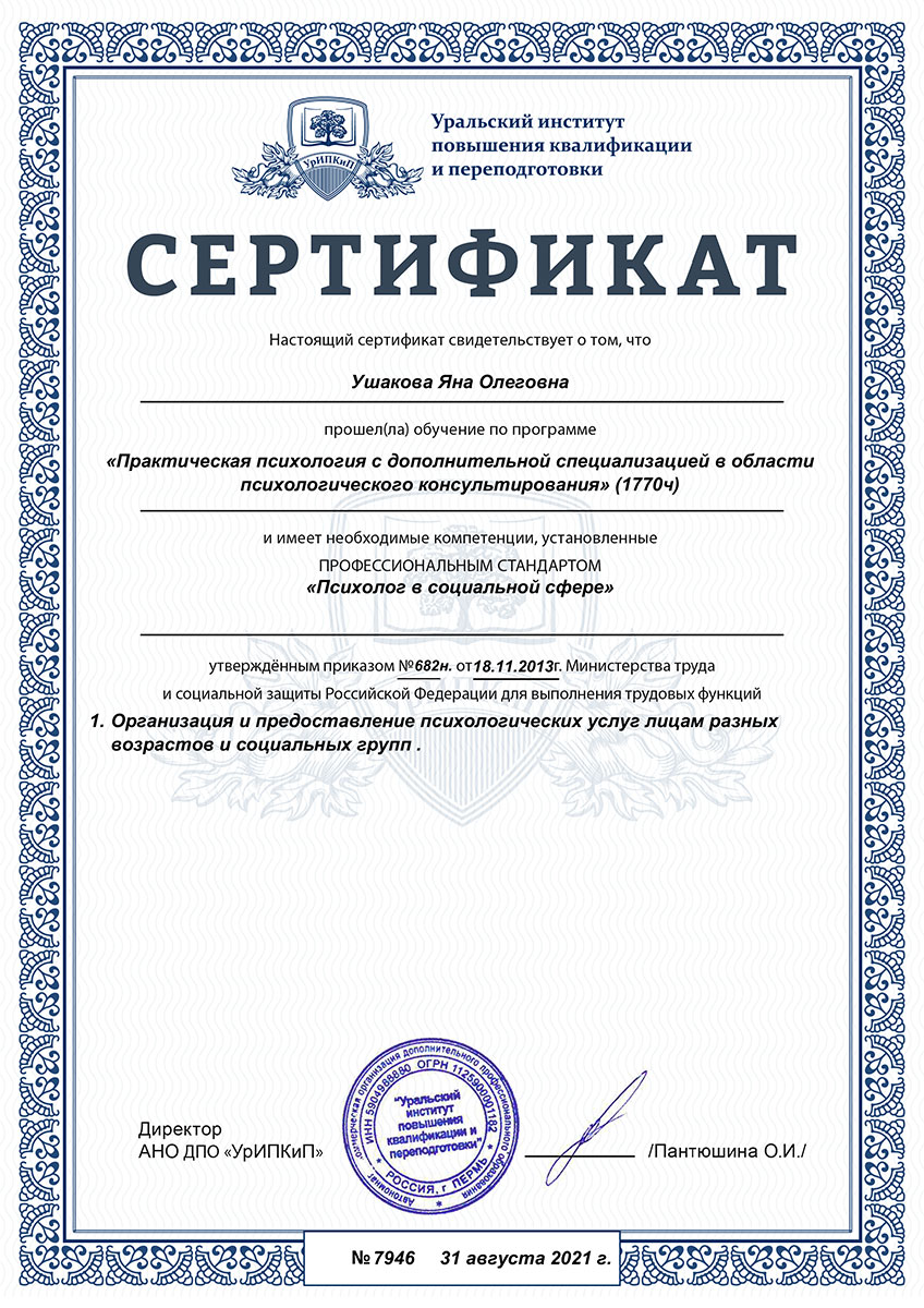 Меня зовут Яна Ушакова, я практикующий психолог-консультант.